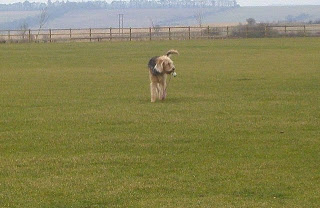 We have now discovered how Rocky manages to catch a little dog that runs rings around him by running in and out of his legs!!!! Yes, that's her tail he's got!!!!